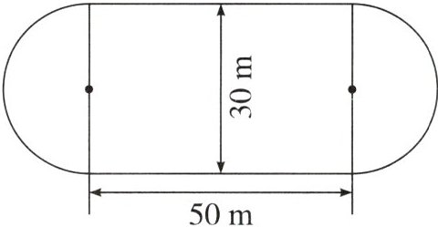 2. 一个运动场的形状与大小如图所示,它的两边是半圆形,中间是长方形,这个运动场的占地面积是多少平方米?