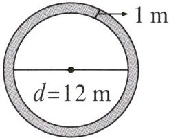 1. 公园里有一个直径是 $ 12 m $的圆形花圃(如图),在花圃的周围修一条 $ 1 m $宽的石子路,这条石子路的面积是多少平方米?