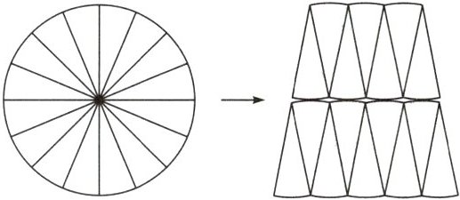 小红把分成 16 等份的圆形纸板拼成了下面的梯形。