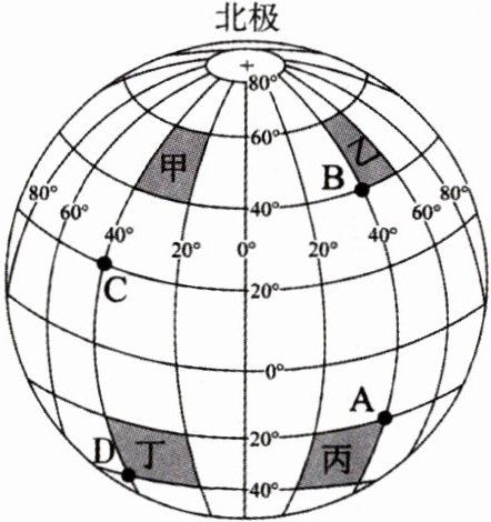 (3) 图中位于南半球的点是______,位于东半球的点是______。