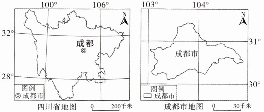 第 31 届世界大学生夏季运动会于 2023 年 7 月 28 日在成都隆重举行,为了解成都区位,我们可以借助地图。下面是四川省和成都市的政区图,据此完成 1、2 题。