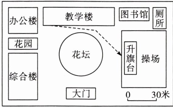 8. 图中从教学楼到升旗台的路线实际距离约是( )