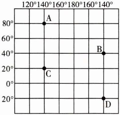 (2) A 点在 B 点的______方向,A 点在 C 点的______方向,D 点在______(选填“高”“中”或“低”)纬度地区。