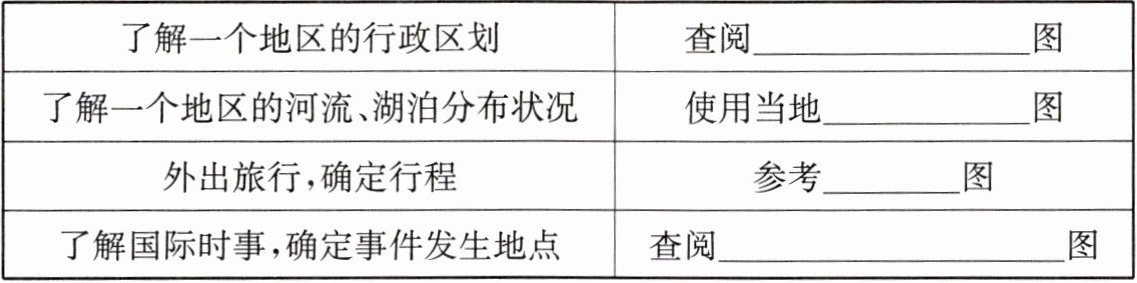 |了解一个地区的河流、湖泊分布状况|使用当地______图|