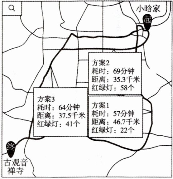 ①路程最短 ②耗时最少 ③红绿灯少 ④费用最高