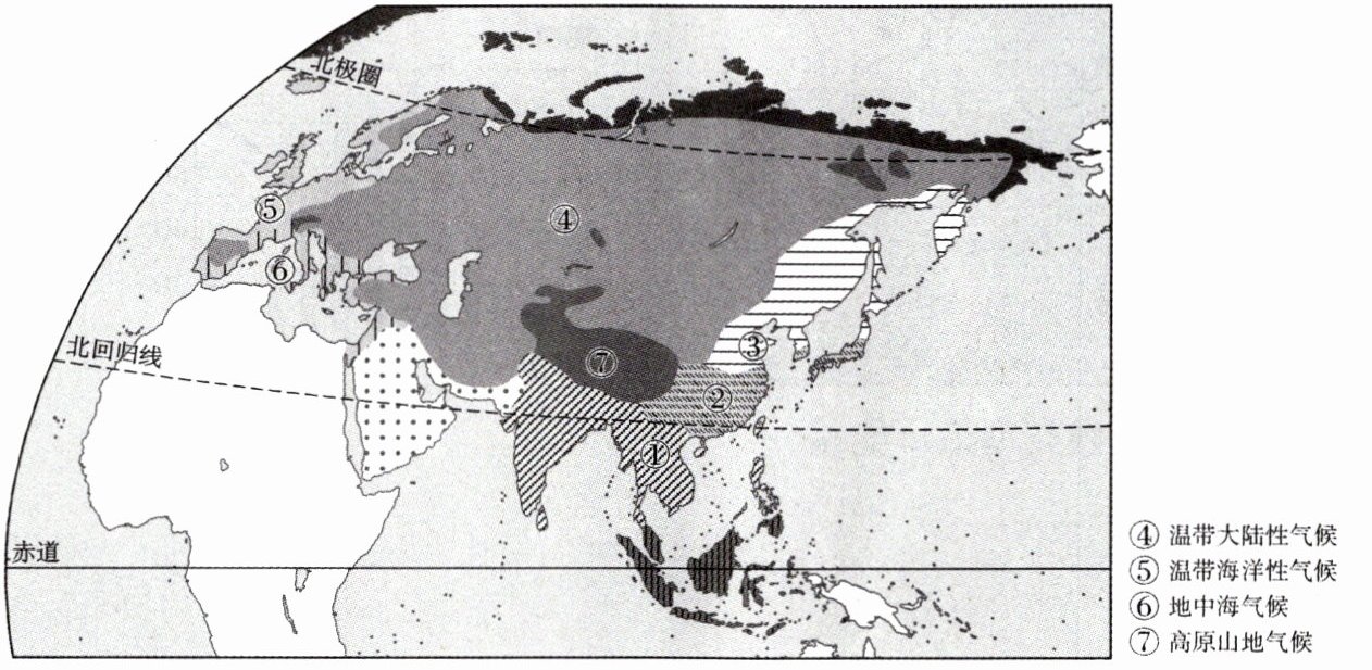 【案例探究】探究亚欧大陆气候类型分布特点,归纳影响气候空间分布的主要因素。