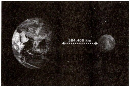 下图为地球的卫星影像和地球月球距离示意。读图,完成7、8题。