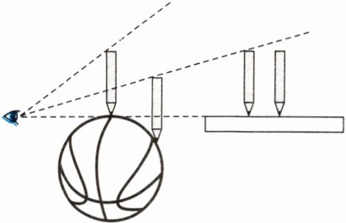 (1) 实验1:铅笔在篮球上由近到远移动时,你会发现______(选填“铅笔头”或“铅笔尾”)会慢慢看不见,铅笔的长度会慢慢变______(选填“长”或“短”)。