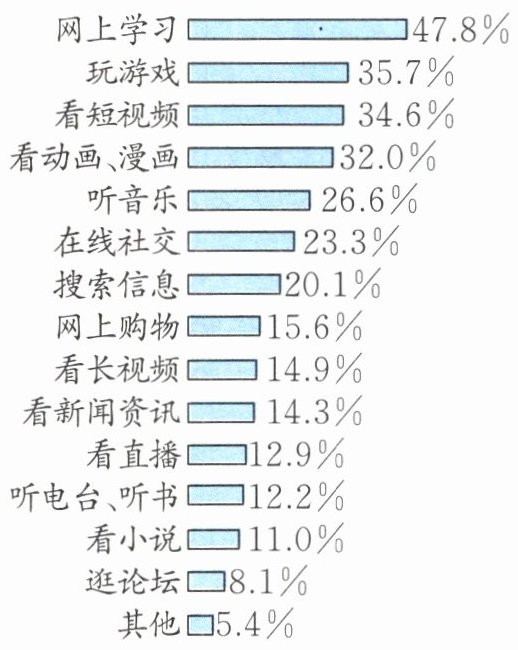 3. 根据《青少年互联网使用情况调查报告(2024)》,青少年各类上网活动的情况如下图所示。由此可见( )