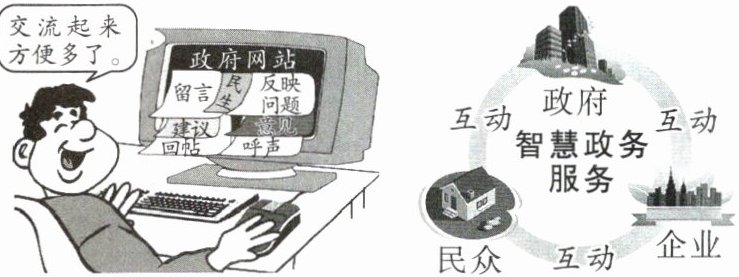 |丁:针对校园周边斑马线无交通信号灯的问题,通过政府网络问政平台提交建议|④网络畅通人们参与社会治理的渠道,保障人们的表达权和监督权,促进民主政治的进步|