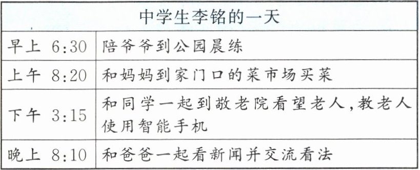 主题情境 人的成长离不开社会。以下是中学生李铭的一天,请你阅读并完成4~5题。