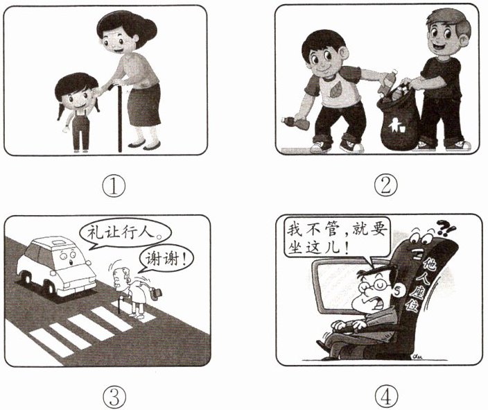 9. 启航原创 某校团委准备办一期以“文明有礼,从我做起”为主题的展板,现面向全校师生征集素材。下列图片能入选的有 ( )