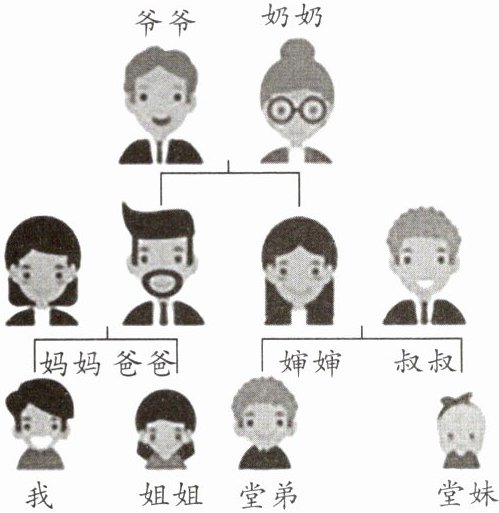 ①图中家庭成员之间的关系让我认识到,人是社会的人,我们都是社会的一员。②人的身份是在社会关系中确定的,在不同的社会关系中,我们具有不同的身份,例如我是父母的子女,是叔叔婶婶的侄子侄女等。③社会为人的生存和发展提供必要条件,图中展示的家庭关系反映出我们生活在一个相互联系的社会网络中,我们的生存和发展离不开社会。④社会的发展离不开每个人的努力,我们要正确认识自己在社会中的位置和角色,为家庭和谐和社会发展贡献自己的力量。(答出一点得2分,任答三点即可)