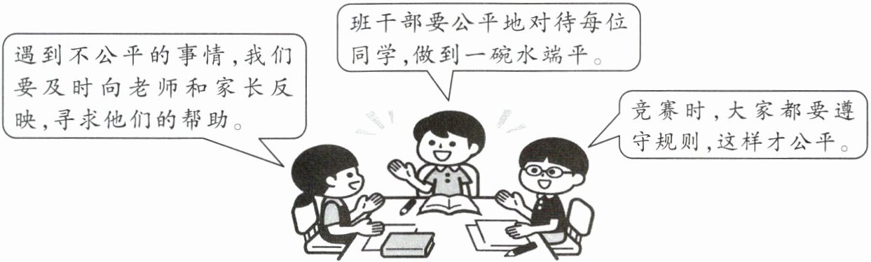 11. (教材改编·P68探究与分享)八年级某班就“如何做到公平”展开了讨论,同学们各抒己见。