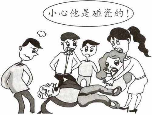 5. 如果有老人摔倒,你会扶吗?对于下图中人物的顾虑,我们应该( )