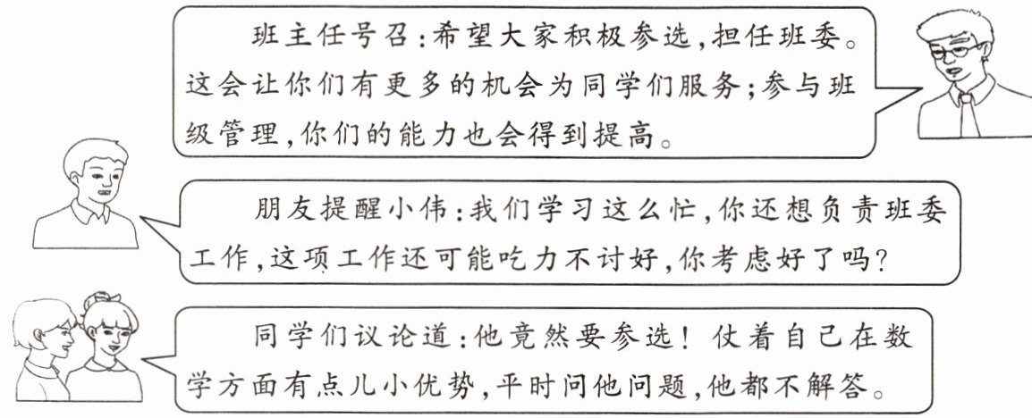 11. (2024重庆巴蜀中学模拟)某校八年级(4)班正在进行班委竞选,小伟决定参加。请观察下面的漫画,运用所学知识,回答问题。(6分)