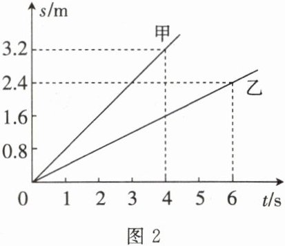 3. 质量相等的甲、乙两辆小车同时同地同方向沿水平路面做匀速直线运动,图2为它们的s-t图像。以甲车为参照物,乙车是