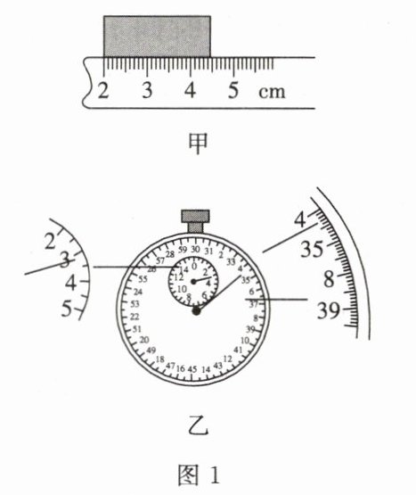图1甲所示的刻度尺的分度值是1 mm,被测物体的长度是2.46 cm。图1乙所示秒表的示数为184.3 s。