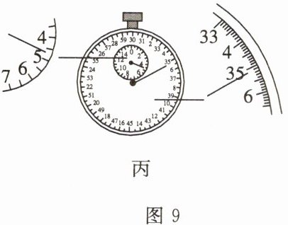 (1)如图9所示,在测物体的长度时,两种方式中正确的是甲图中的,读得铅笔的长度为3.51 cm。图丙所示的秒表的读数为275.1 s。
