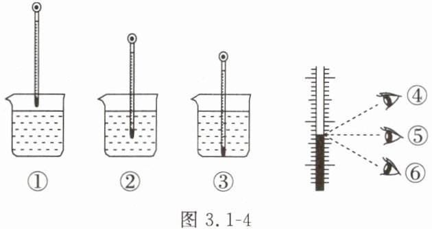 4. 用同一支温度计分别测量一天当中正午与晚上的气温。温度计两次的示数如图3.1-2甲、乙所示,其中