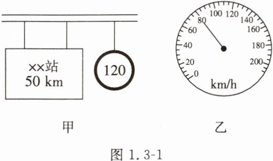 (1) 汽车按图 1.3 - 1 乙所示速度表显示的速度行驶到高铁站需要多长时间?