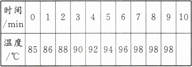 (2)该同学在水温升高到85℃后,每隔1min读取一次温度计的示数,直到水沸腾并持续一段时间。实验所得数据如下表所示。实验进行10min后水的温度为