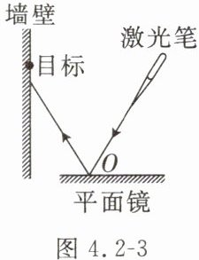 8. 若要使图4.2 - 3中的反射光线射中墙壁上的目标,在激光笔不动的情况下,可将平面镜(