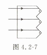 6. 如图4.2 - 7所示,自行车尾灯的红色塑料片突起部分的内侧相当于两块互相垂直的平面镜,从任意方向射来的汽车灯光都会沿与原光线______
