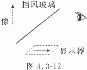 12. 汽车平视显示系统又叫汽车抬头显示系统,它利用平面镜成像原理(图4.3-12为成像原理简化图),将显示器上的重要行车数据通过前挡风玻璃成像在驾驶员的正前方。