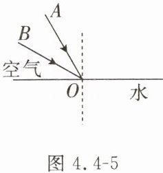 8. 如图4.4-5所示,一束光从空气斜射到水面,若入射方向由BO变到AO,则(