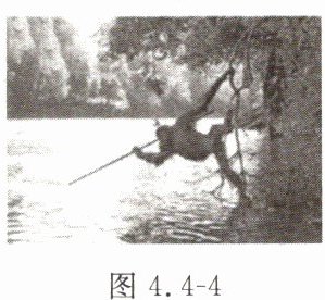 7. 如图4.4-4所示,为了捉到一条鱼,猩猩用矛拼命地刺向水里却没有成功,这主要是光的