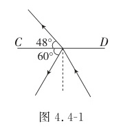 3. 如图4.4-1所示,一束光在水和空气的界面CD同时发生反射和折射,入射角为