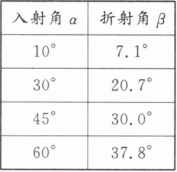 (3) 根据表格中的数据还可以判断:当光以35°的入射角从空气射入玻璃中时,其折射角