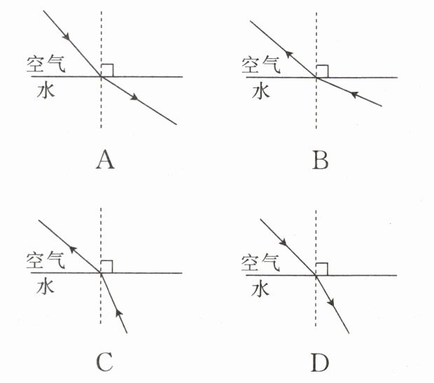 9. 有经验的渔民都知道,只有瞄准在水中所看到的“鱼”的下方才可以叉到鱼。此现象中涉及的光路图是(