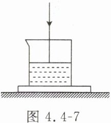 11. 如图4.4-7所示,一个烧杯中装有半杯水,放在水平长木板上,一束光竖直向下照在水面上。在长木板右端下方垫一个小木块,使木板倾斜一个小的角度,此时(