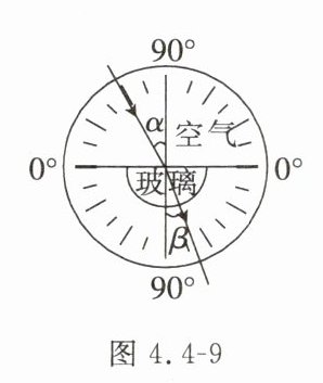 13. 图4.4-9是某同学利用光具盘探究光从空气斜射入玻璃中时的光路,他经过多次实验并记录了以下数据。