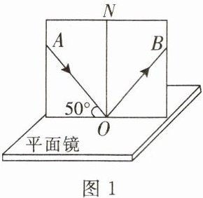 1. 在“探究光的反射规律”实验中,水平放置平面镜,白色纸板竖直立在平面镜上,纸板由左、右两部分组成,可以绕 $ ON $ 翻折,如图 1 所示。