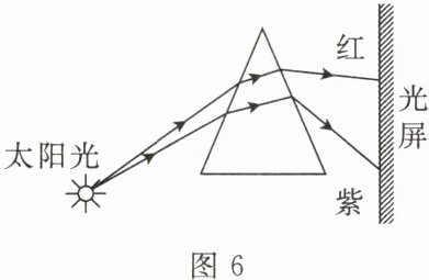14. 1666 年,英国物理学家牛顿用玻璃三棱镜分解了太阳光,在光屏上得到了七色光,解开了光的颜色之谜,如图 6 所示。下列是某同学在探究有关光现象时的一些说法,其中不正确的是(