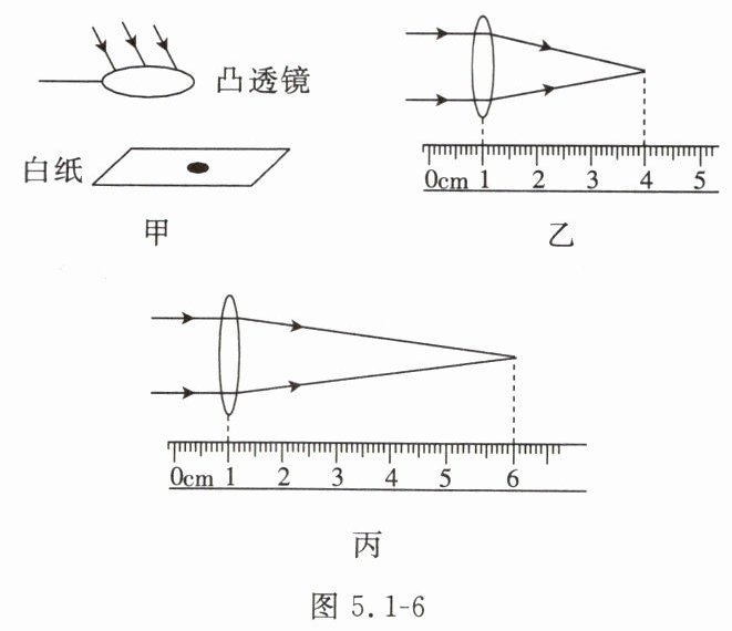 。(4)凸透镜的焦距是表示凸透镜对光的会聚能力的一个物理量。两个直径相同的凸透镜,它们的焦距分别如图5.1-6乙、丙所示,那么焦距为