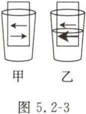 6. 如图 5.2-3 甲所示,在圆柱形透明水杯后面放一张画有两个箭头的纸条。往杯中倒入适量水,透过水杯,看到其中一个箭头改变了方向(如图 5.2-3 乙所示)。这是由于该水杯装有水的部分具有