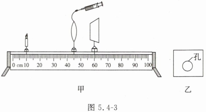 作用。(4)若在水透镜前放一个如图5.4-3乙所示的遮光板(孔的直径小于水透镜的直径)来探究瞳孔的作用,与放遮光板之前相比,像的变化是(
