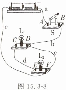 (选填“断开”或“闭合”)的。(2)该同学连接了如图15.3-8所示电路,如果闭合开关,将出现