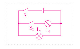 这一根导线,就能将电路改为两灯串联的正确电路。拆除该导线后,闭合开关S,灯$ L_1$、$ L_2$都不亮。用一根导线的两端接触A、B两点时,两灯都不亮;接触C、D两点时,两灯也不亮;接触E、F两点时,只有灯$ L_1$亮。对此,下列判断中正确的是B