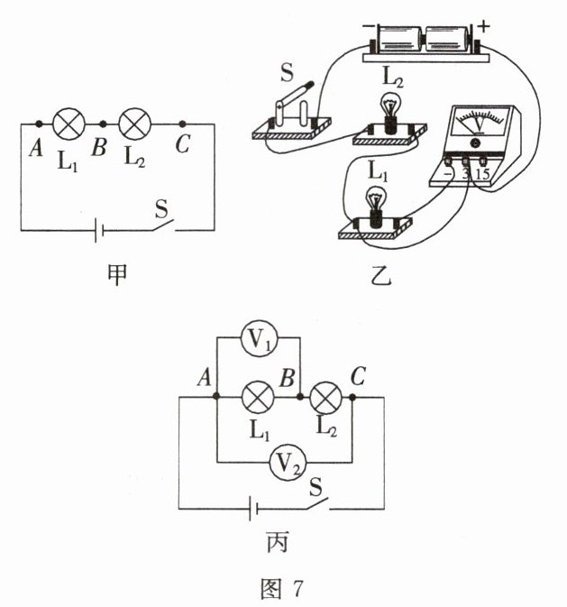 8. 小华和小明在做探究串联电路电压的规律实验时,设计了如图7甲所示的电路。