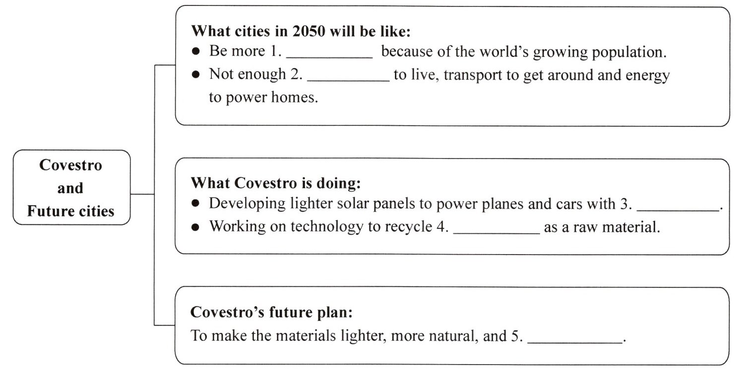 A.1. crowded 2. places 3. sunlight 4. CO₂ 5. smarter