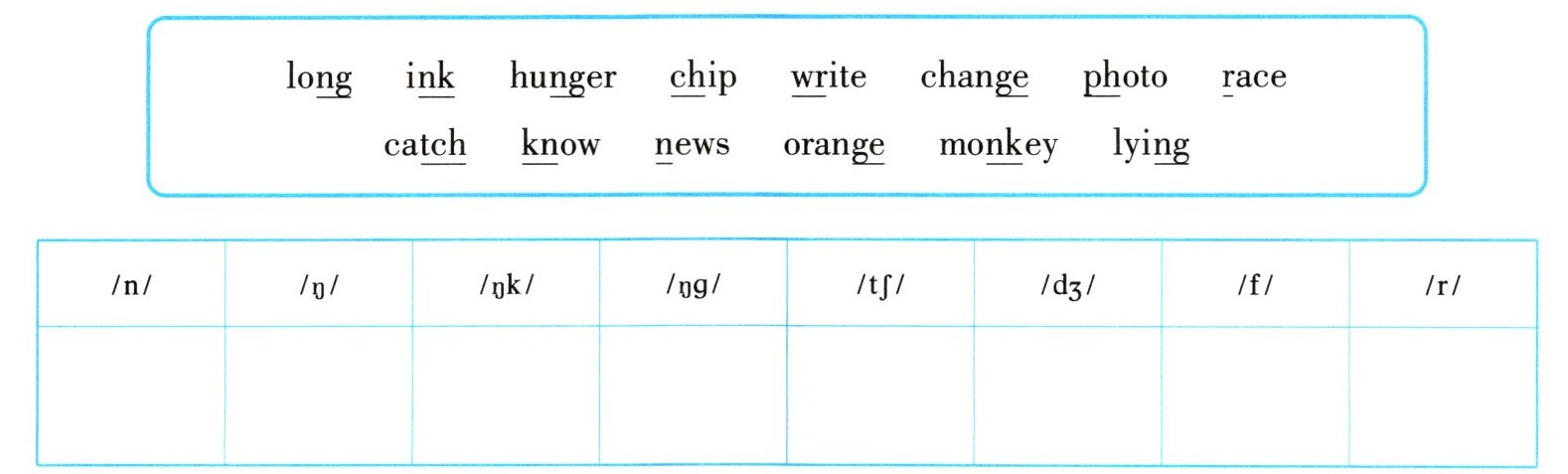 Ⅰ. 朗读单词,根据画线部分的发音将单词进行归类。