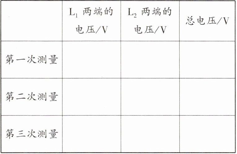 | | $L_1$两端的电压/V | $L_2$两端的电压/V | 总电压/V |