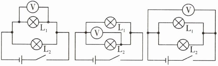 (2) 用电压表分别测量$L_1$、$L_2$两端的电压和电路总电压;
