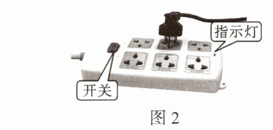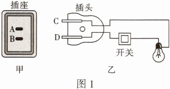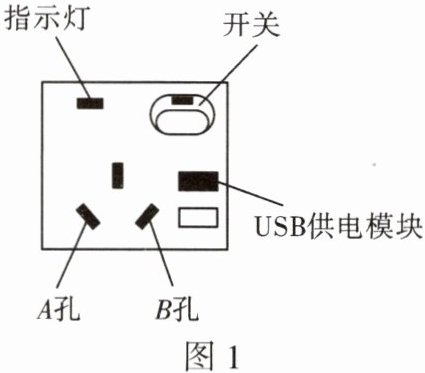 3. 跨学科 物理学与日常生活 如图1所示,开关闭合,指示灯亮,小明用测电笔接触插座B孔,氖管发光,则B孔接的是
