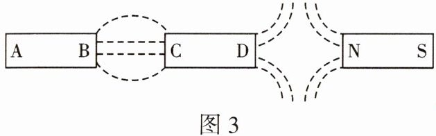 7. 三个磁体相邻磁极间的磁感线分布如图 3 所示,D 端为